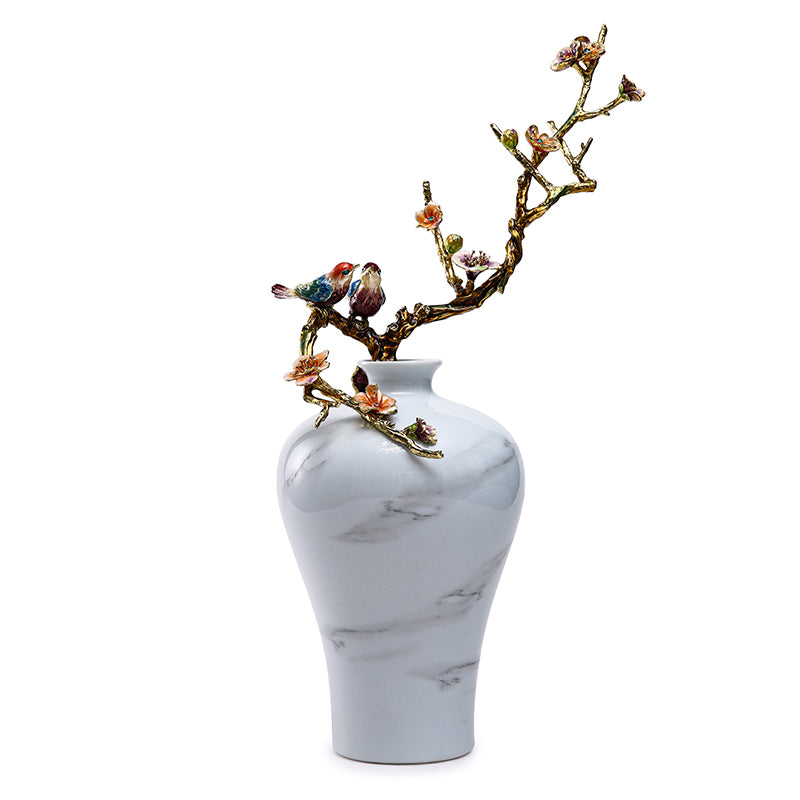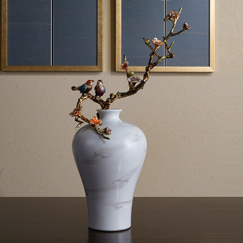 مزهرية من الرخام الأبيض على شكل طائر مغرد
