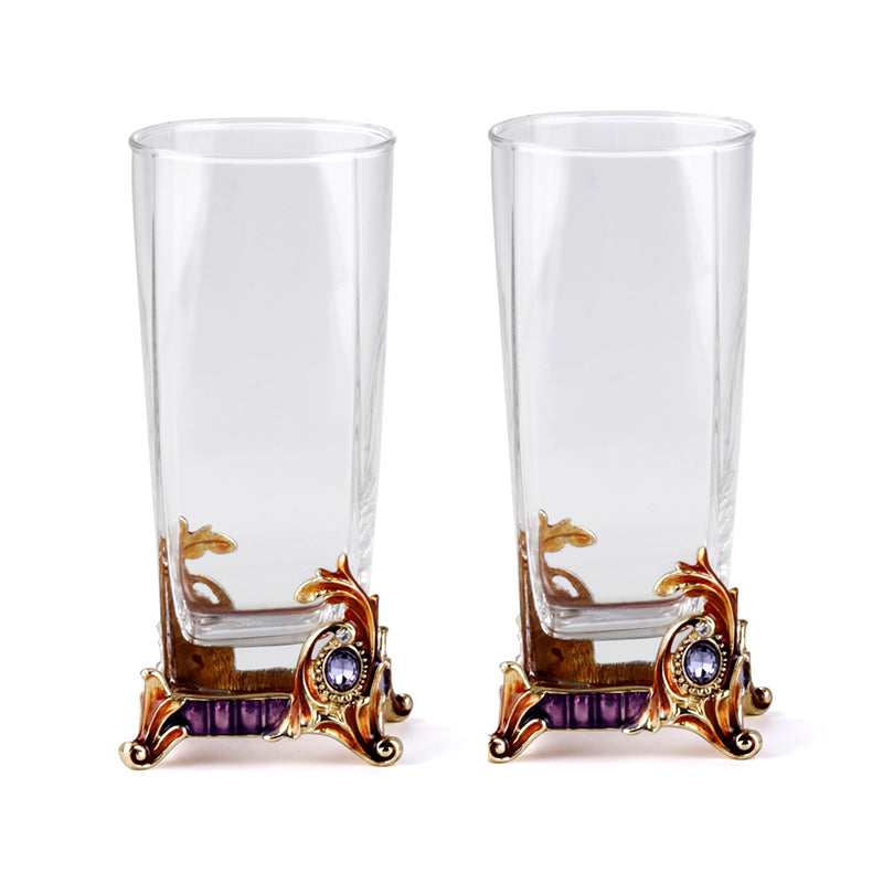 نخب مهيب حيث يلتقي الكريستال الشفاف مع زخارف الجمشت المتقنة، مما يخلق جواً من الأناقة الأرستقراطية والفخامة الخالدة المرصعة بالجواهر لأروع لحظاتك.